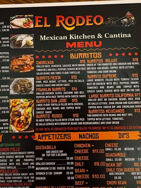 El Rodeo's menu features a wide variety of Mexican dishes. From mouthwatering appetizers to hearty entrees, there's something for everyone. Popular items include tacos, burritos, and enchiladas, crafted with fresh ingredients.